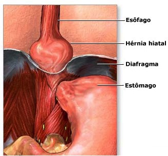 Para chegar até o estômago, o esôfago passa pelo hiato (orifício do músculo diafragma que separa o tórax do abdômen). Se este orifício está mais largo e frouxo do que deveria estar, a parte superior do estômago acaba deslizando para dentro do tórax, formando a chamada hérnia de hiato. O fumo, a cafeína, o álcool, a obesidade e os alimentos gordurosos podem piorar o refluxo.